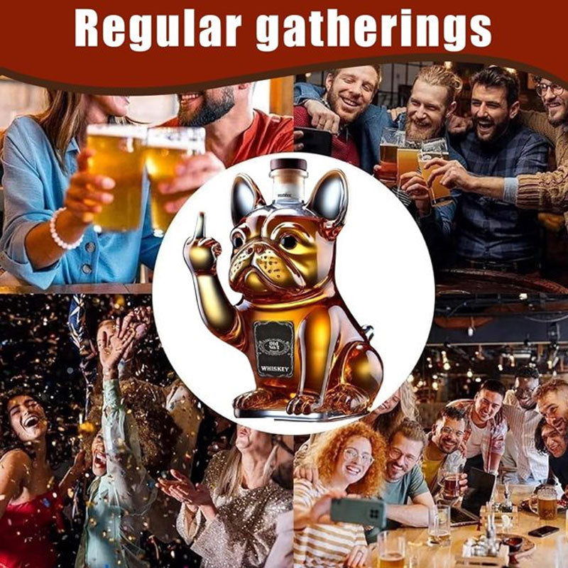 Wer kann diesem kleinen Welpen mit erhobener Pfote widerstehen? 🐶 Diese niedliche, runde Glasflasche mit Charakter verleiht Ihrer Bar oder Ihrem Regal Charme und sorgt garantiert für Gesprächsstoff!