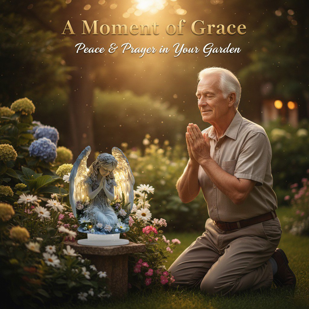 Ein Garten sollte ein Ort der Ruhe sein. Die ruhige, betende Haltung des Engels und das sanfte Licht schaffen eine friedliche Atmosphäre und bieten einen ruhigen Ort zum Nachdenken.